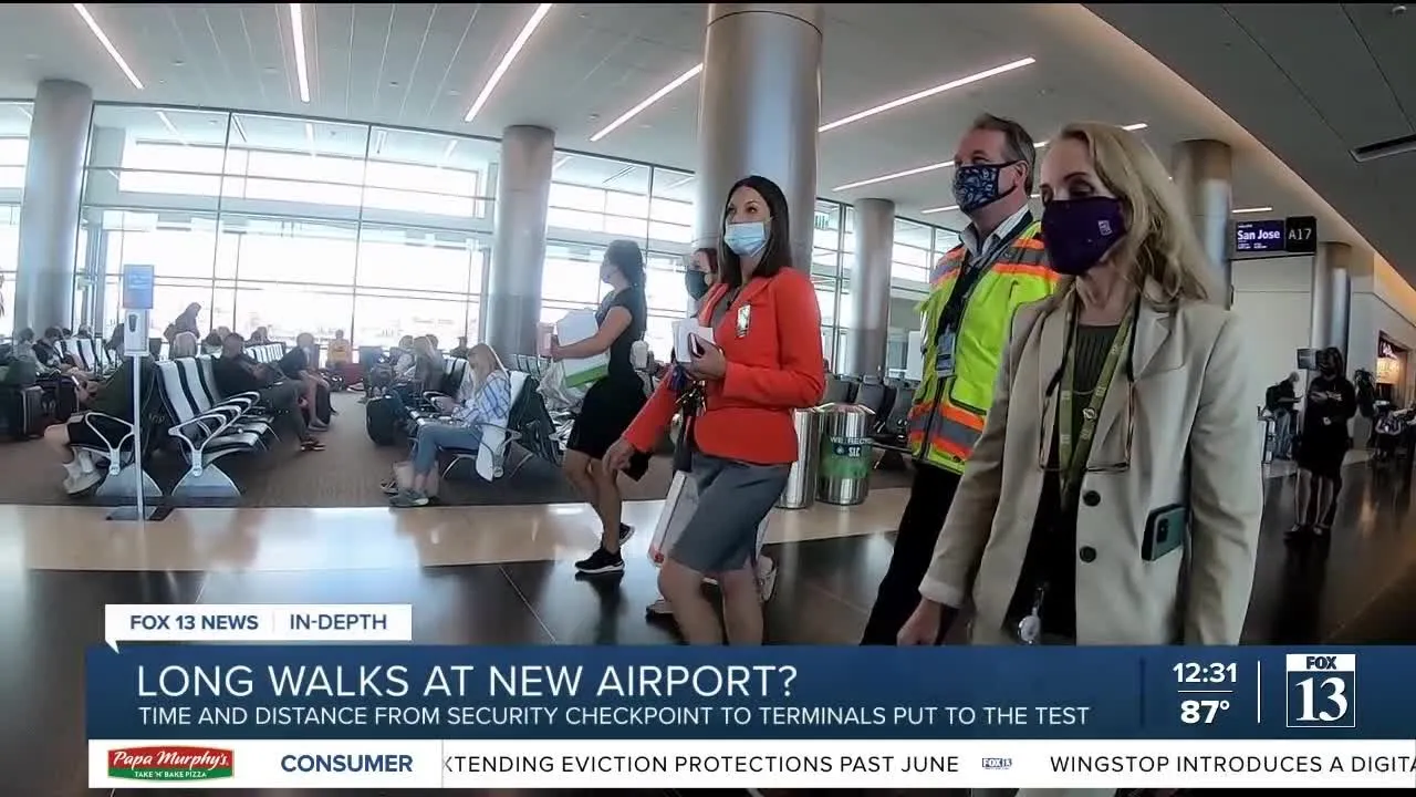 35. testing the long walk at the new slc airport how the new salt lake city international airport is preparing for a surge in summer travel.testing the long walk at the new slc airport